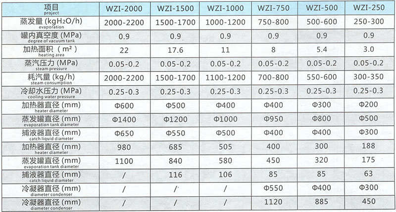 WZⅠ型有一效、二效、三效系列規格,另有Q型為強制外循環蒸發器。本品可廣泛用于醫藥、食品、化工、輕工等行業的水或有機溶劑的蒸發濃縮。特別適用于熱敏性物料,(例如中藥生產的水、醇提取液、抗生素發酵液、牛奶、果汁等),在真空條件下進行低溫連續濃縮,可確保產品質量。